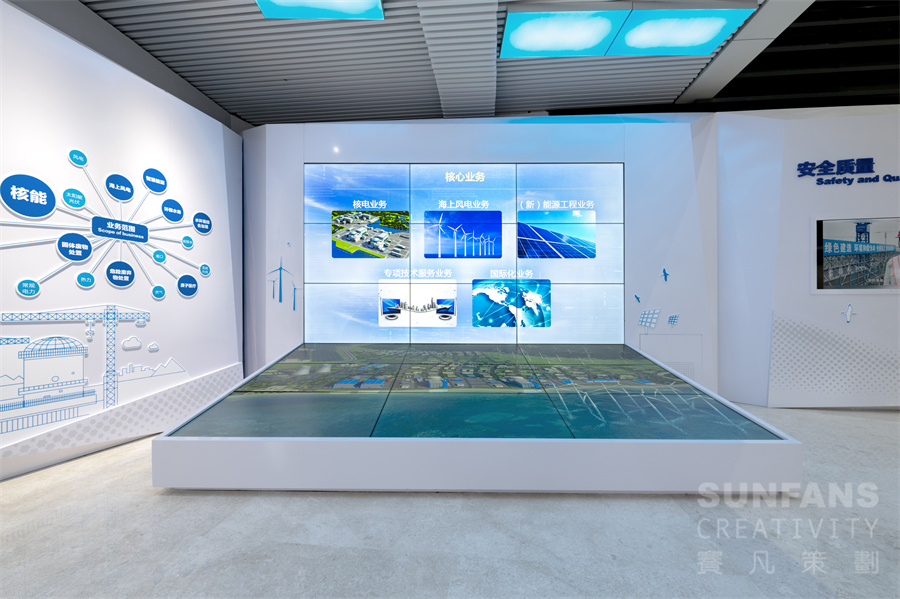 在展示內(nèi)容上,工程公司展廳區(qū)別于各核電業(yè)主公司展廳的科普和公司介紹功能,主要以市場化為導(dǎo)向,推介公司業(yè)務(wù)能力和水平,促進(jìn)公司市場化業(yè)務(wù)的開拓。