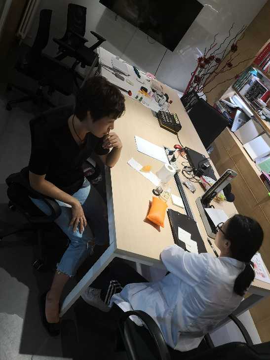 丁大夫把脈結(jié)束,跟我們的同事將解她目前的身體狀況。