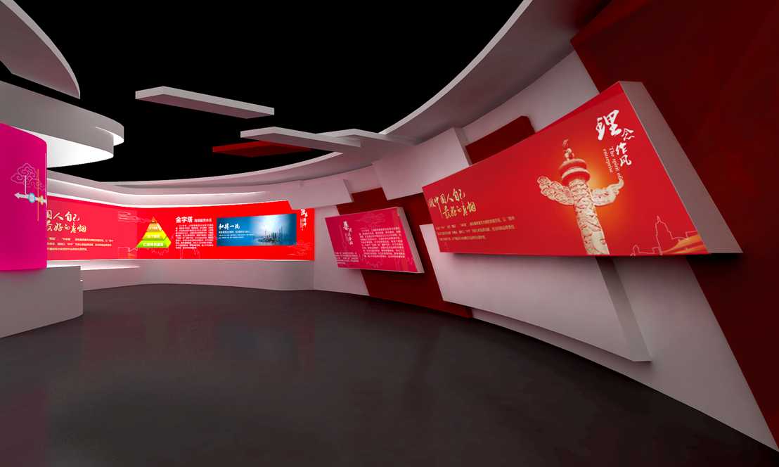 賽凡提取海派文化精髓、配以百年中華文化字形流體矩陣式光明頂,照射著參觀者的鑄夢之旅。設(shè)計(jì)構(gòu)思上汲取“?!钡牡赜蛱厣?,打造立體多維藝術(shù)空間,整個(gè)展館將創(chuàng)業(yè)、奮斗、激情、企業(yè)愿景等情感展示。