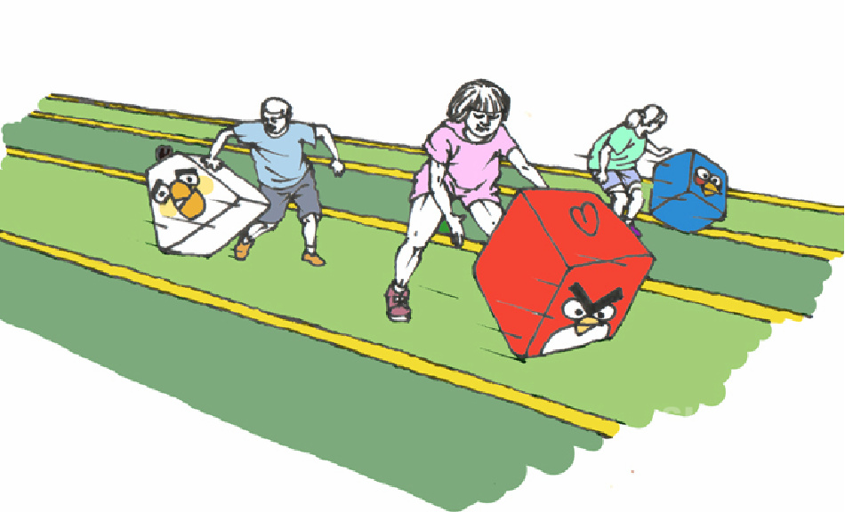 是小型競(jìng)賽類(lèi)游戲,游戲環(huán)節(jié)設(shè)計(jì)以異形滾動(dòng)的立體小鳥(niǎo)通過(guò)終點(diǎn)線獲勝而完成游戲項(xiàng)目。充分的考驗(yàn)小朋友對(duì)不同形態(tài)物體特征的把握并在游戲的過(guò)程中巧妙運(yùn)用的能力。