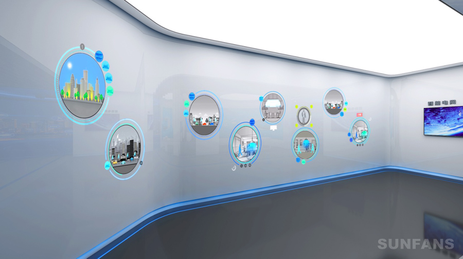 應(yīng)用了高流明投影和觸控傳感技術(shù),將普通墻面變身為光影交互的“魔法墻”。魔法墻支持多人同時(shí)操作,用戶可通過(guò)雙手觸碰墻面和輕掃來(lái)觸發(fā)電網(wǎng)發(fā)、輸、變、配、營(yíng)銷、運(yùn)檢、物資管理等關(guān)鍵環(huán)節(jié)進(jìn)行詳細(xì)展示。魔法墻展示具有易更換的特點(diǎn),方便內(nèi)容的擴(kuò)充。