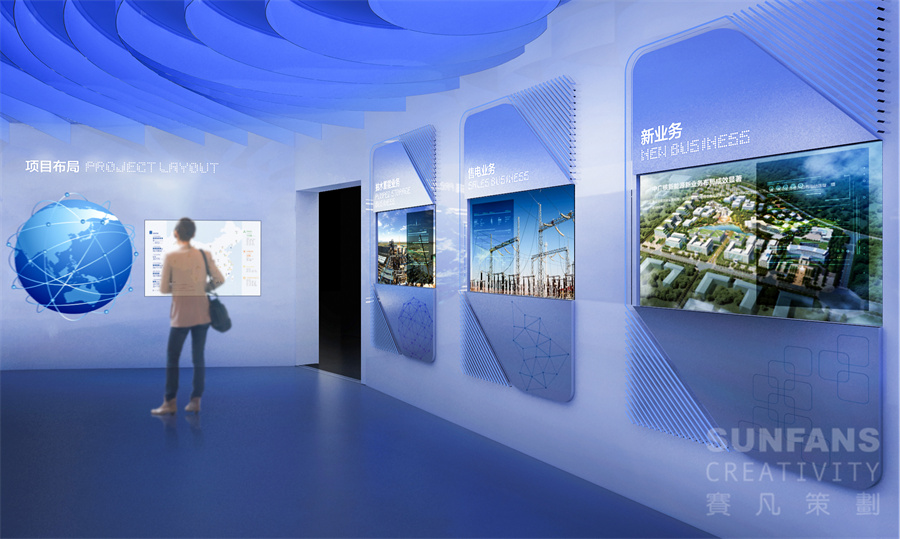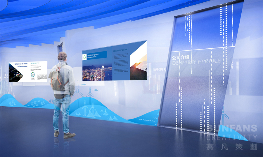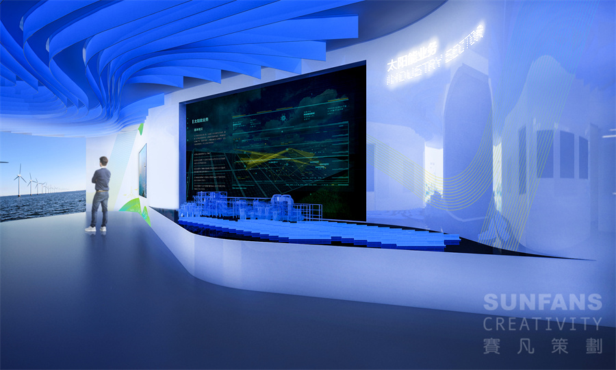 展廳設(shè)計(jì)立足中廣核集團(tuán)傳播基礎(chǔ),通過(guò)展現(xiàn)中廣核集團(tuán)及新能源公司的發(fā)展歷程、業(yè)務(wù)布局及核心成果,突出新能源公司堅(jiān)持不懈、勇于開拓、敢于擔(dān)當(dāng)?shù)母镄戮瘛?