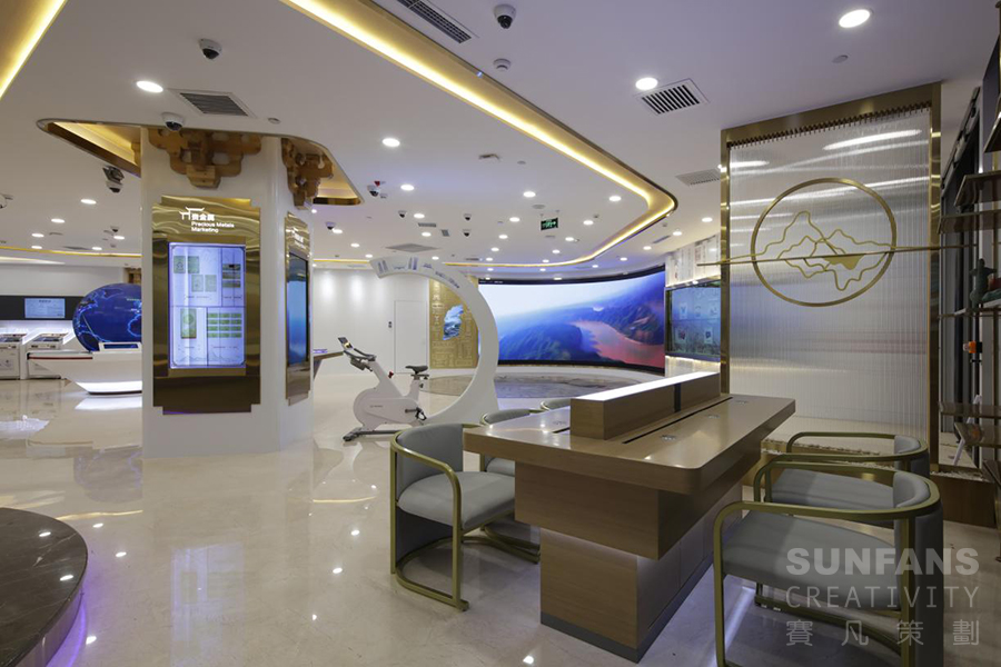 在設計過程中,賽凡團隊始終圍繞文旅主題元素,結合軟硬件設施與科技金融服務兩大模塊,展現客戶作為國有大行積極服務國家發(fā)展大戰(zhàn)略的優(yōu)質品牌形象,推進網點業(yè)務差異化建設。