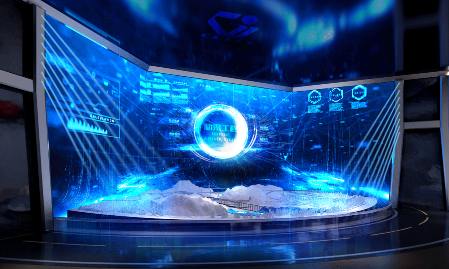 在展廳的深處,不僅講述著這段波瀾壯闊的歷史與文化,更將集團(tuán)的科技實(shí)力作為展示的重點(diǎn)。為此,設(shè)計(jì)團(tuán)隊(duì)精心打造了一個(gè)多媒體全景數(shù)字沙盤,利用3D全息技術(shù)和大數(shù)據(jù)可視化手段,生動(dòng)展現(xiàn)了貴州公路集團(tuán)在橋梁建設(shè)、隧道開挖、道路養(yǎng)護(hù)等方面的獨(dú)特技術(shù)實(shí)力。這些高科技的應(yīng)用,不僅讓參觀者能夠直觀感受到集團(tuán)的技術(shù)創(chuàng)新成果,更深刻理解了科技在推動(dòng)公路事業(yè)發(fā)展中的重要作用。
