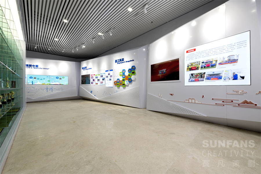 考慮到展廳空間的特殊性,在設(shè)計上我們盡量根據(jù)原空間特點,做到合理利用、節(jié)約成本,并應(yīng)用創(chuàng)新方式改變簡單羅列的展陳模式,針對不同場地特性賦予展區(qū)多元化特點。