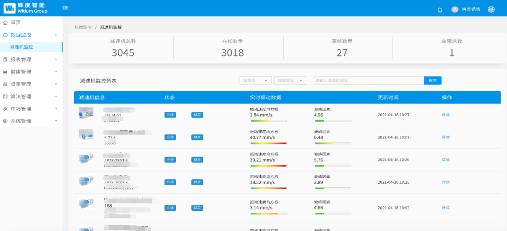 The functions of witcloud cloud platform include: access configuration of vibration sensor and edge computing gateway on reducer equipment (including subject configuration and channel configuration), remote information configuration and equipment firmware upgrade, multiple alarm modes, diary operation and maintenance management, Cloud Architecture on multi-layer edge computing gateway, database backup and retrieval, and management and control of influxdb database.