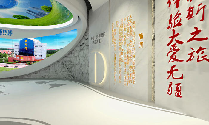 參觀之旅與企業(yè)歷程的美好契合,設(shè)計(jì)“得利于斯” 美食之旅的企業(yè)展廳的主線,從得利斯創(chuàng)業(yè)伊始到變革之路,從作坊式生產(chǎn)到肉類企業(yè)龍頭,觀者一路見證集團(tuán)發(fā)展。
