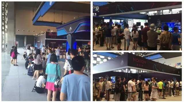 距離開(kāi)始體驗(yàn)還有一段時(shí)間,但是諾亦騰展位前的體驗(yàn)者已經(jīng)排到了轉(zhuǎn)角