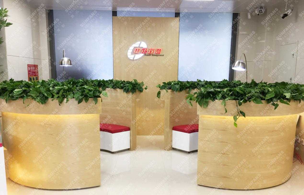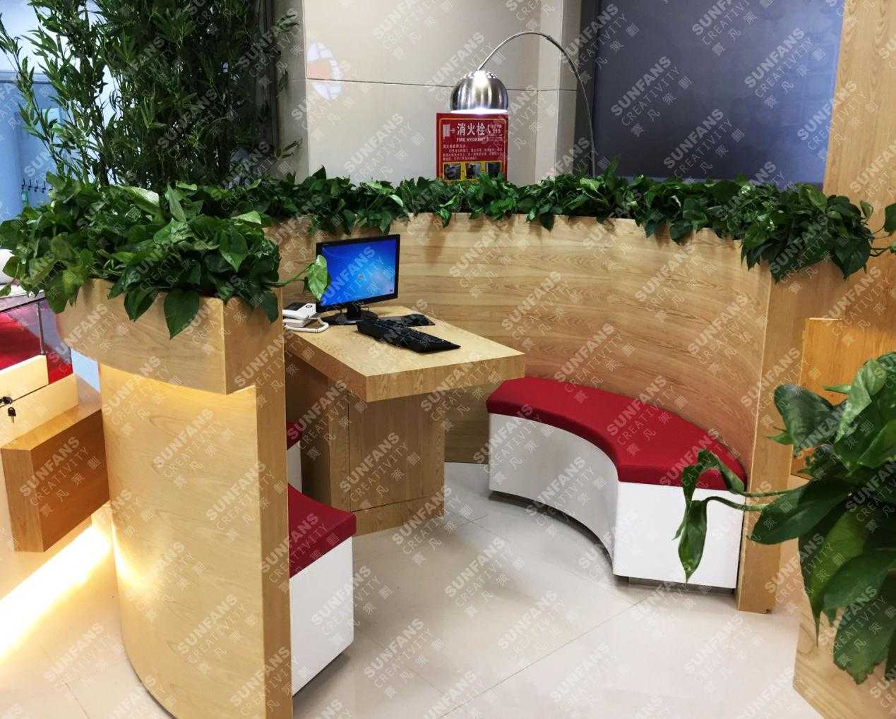 銀行的展廳運用了大量的綠色植物,尤其理財區(qū)域的設(shè)計半封閉的空間式設(shè)計,在注重隱私的同時,也拉近了與顧客之間的距離,增添輕松地氛圍。