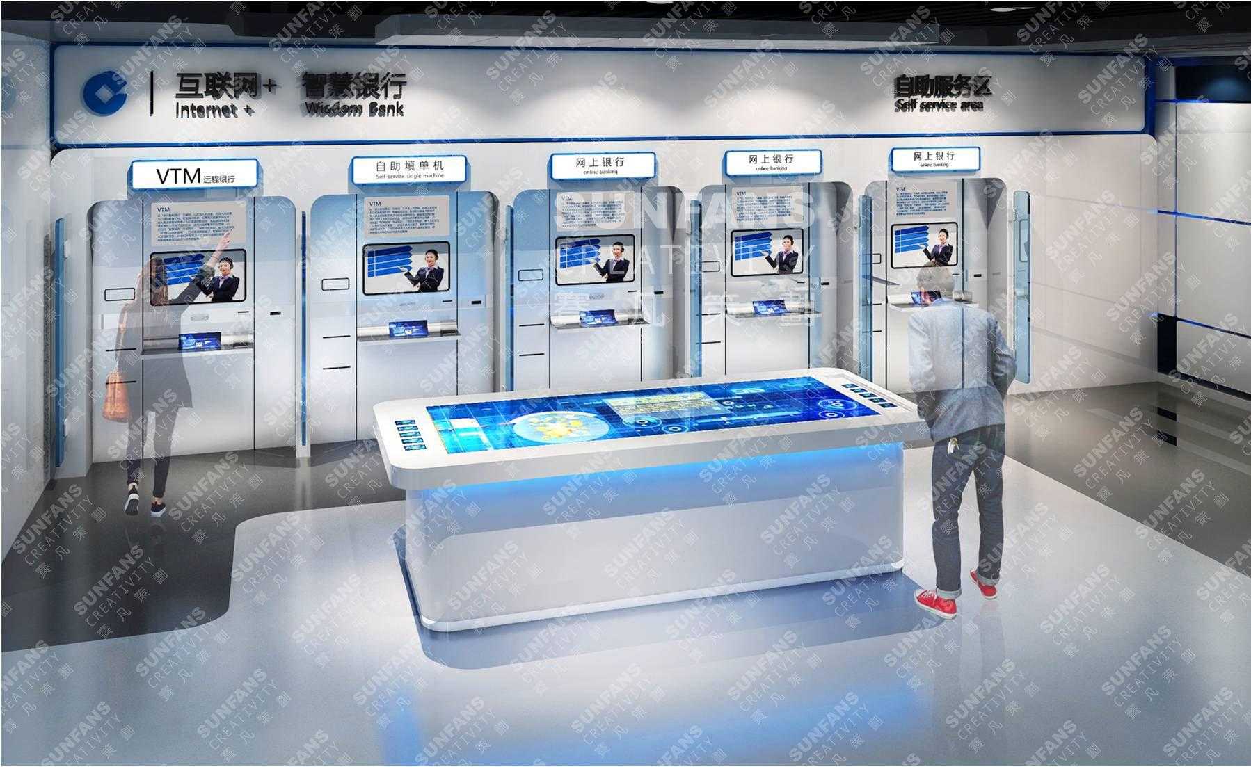 為中國(guó)銀行設(shè)計(jì)策劃了中國(guó)銀行首家未來銀行旗艦店。展廳設(shè)計(jì)時(shí)巧妙運(yùn)用了融遠(yuǎn)程柜員機(jī)(VTM)、金融超市、二維碼掃描、NFC近場(chǎng)通訊等未來銀行中具有前瞻性的智慧化服務(wù),滿足了中國(guó)銀行“未來銀行”旗艦店的實(shí)驗(yàn)室驗(yàn)證基地、客戶體驗(yàn)中心、智能化網(wǎng)點(diǎn)、創(chuàng)新研發(fā)基地等四種功能“四位一體”的實(shí)際需求。