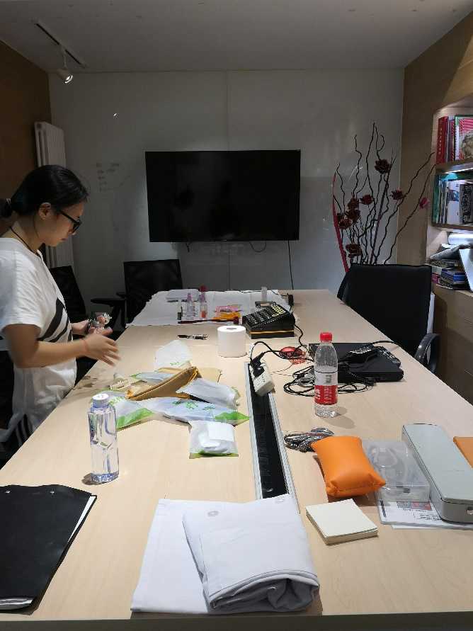 丁大夫在會議室布置自己的醫(yī)療器械