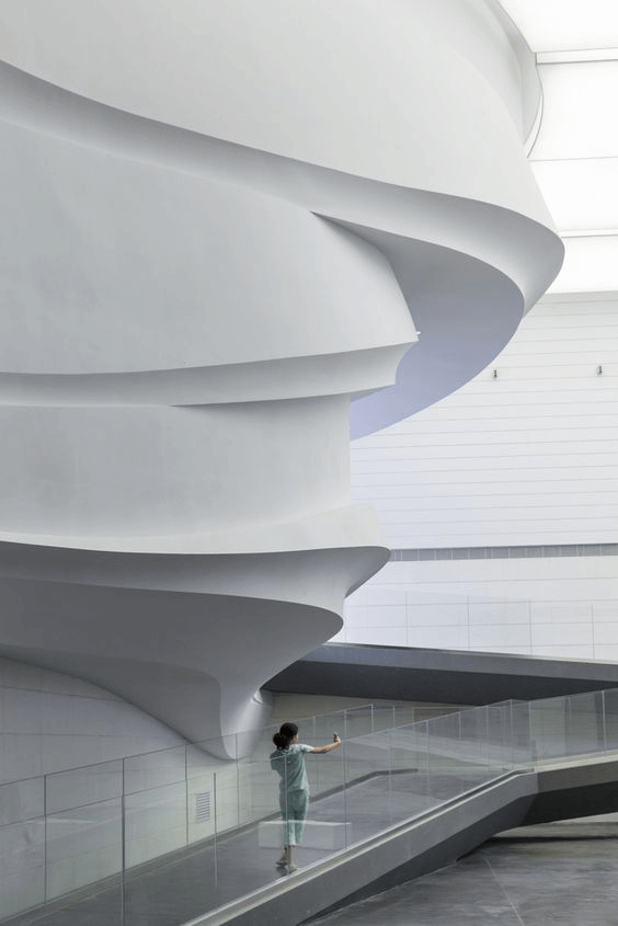依循以煤為核心的產(chǎn)業(yè)構(gòu)成,造型元素從煤的形態(tài)中提取,進(jìn)行組合變形,形成有力量和視覺沖擊力的整體空間。