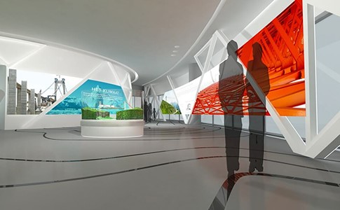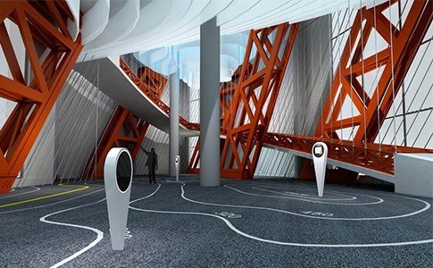 通過多媒體聲光電等多種表現(xiàn)手法,展示大橋設(shè)計(jì)施工管理的整個(gè)過程。