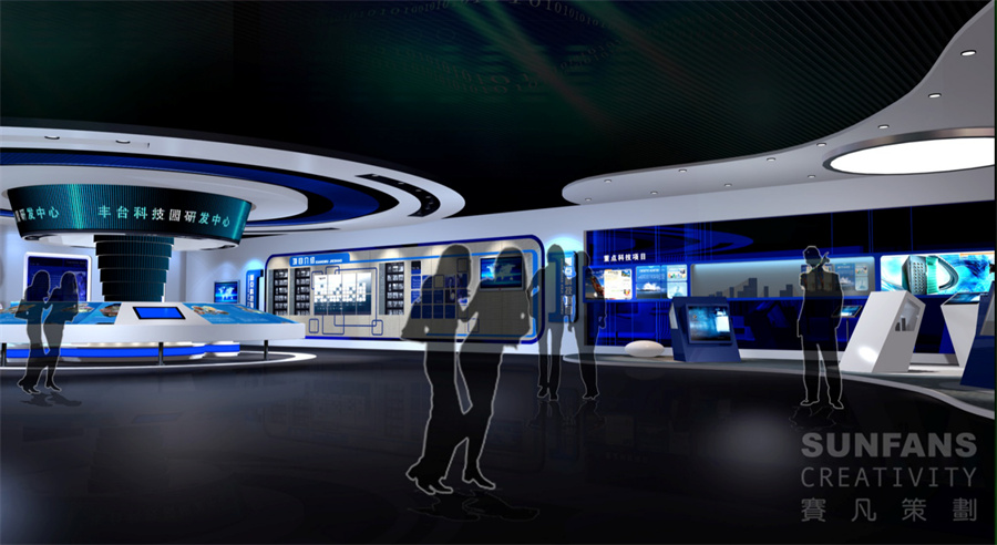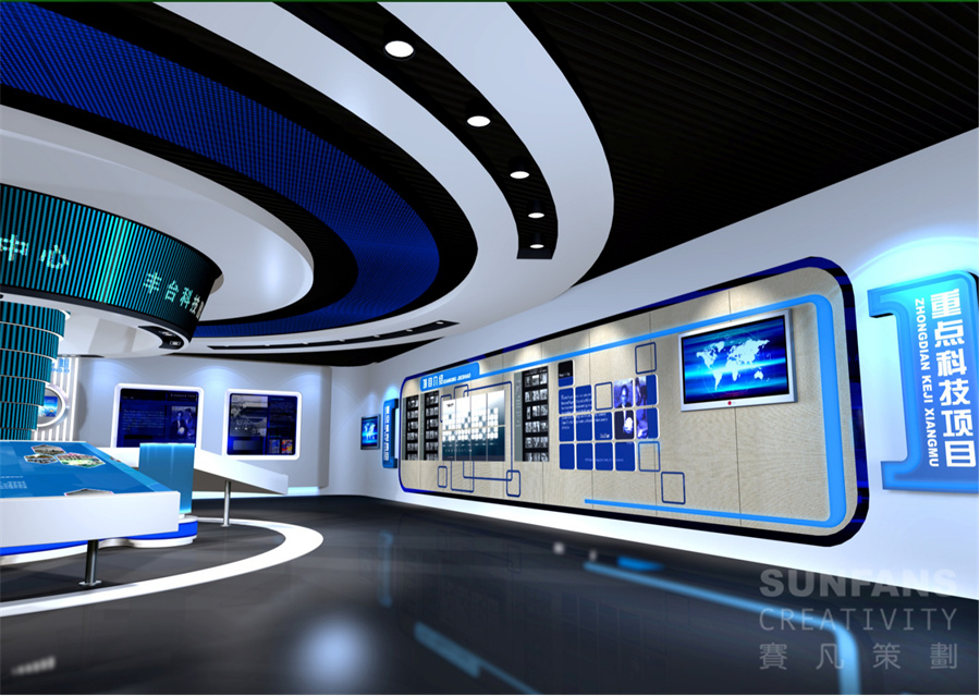 科技園展廳設(shè)計要注重長遠規(guī)劃,賽凡設(shè)計力求打破傳統(tǒng)企業(yè)展示風(fēng)格,更加注重展廳的體驗感和互動性,應(yīng)用了較多的高科技手段,綜合以多媒體影像、燈箱、模型、浮雕等手段,結(jié)合展示內(nèi)容,營造出了科技、現(xiàn)代的展示風(fēng)格。