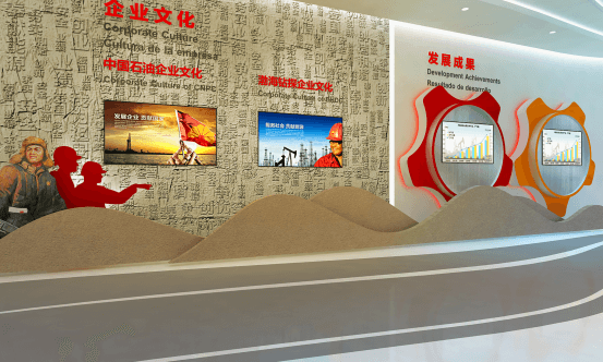 競爭是前進的動力,和諧是發(fā)展的源泉。展廳設(shè)計以開敞的大??臻g,觸摸感應(yīng)琴輔奏華彩樂章,展示渤海鉆探的大位移鉆井技術(shù)、煤層氣鉆完井技術(shù)、無線傳輸云錄井技術(shù)等。