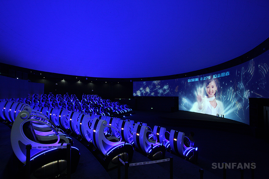 環(huán)幕影院是一種以環(huán)形、弧形或曲面為投影幕的多媒體互動投影。環(huán)幕投影可將觀眾置于環(huán)幕的中間位置,環(huán)幕畫面呈現(xiàn)環(huán)繞感、包圍感,可呈現(xiàn)出一種設(shè)身處地般的沉浸感、參與感。