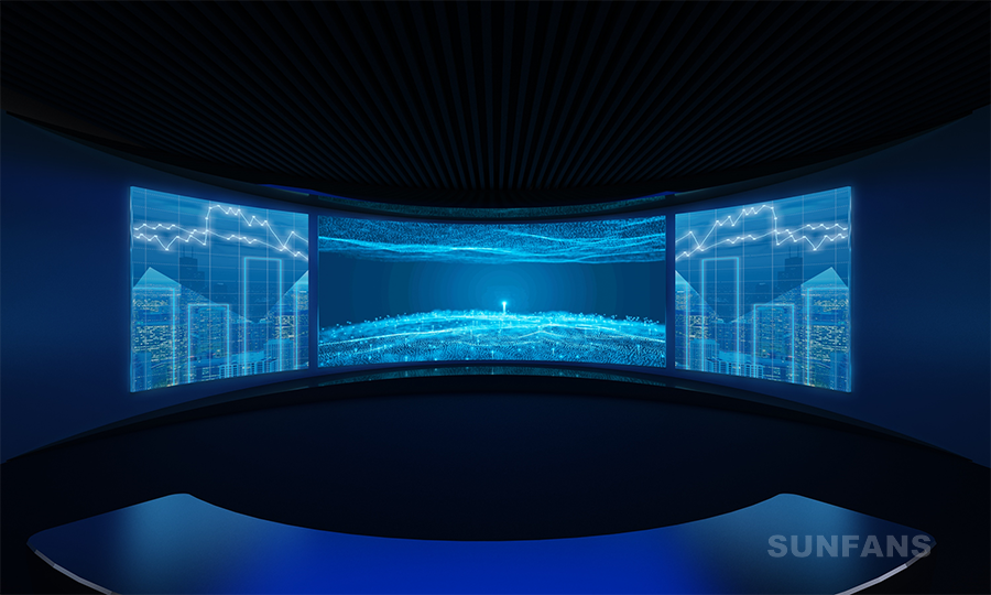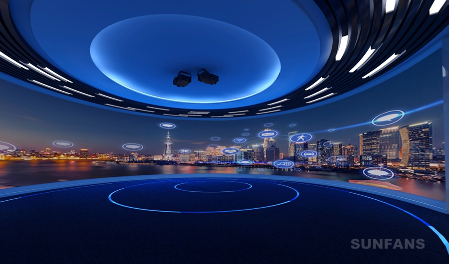 與電影院采用標(biāo)準(zhǔn)巨型幕布不同,展廳中的沉浸式投影根據(jù)需要多使用巨幅異形幕,如弧幕、環(huán)幕、天幕、多折幕、全景CAVE等非常規(guī)投影幕,適用于各類場所如規(guī)劃館、博物館、科技館、企業(yè)展廳、大型游樂場所、多功能會議室等。