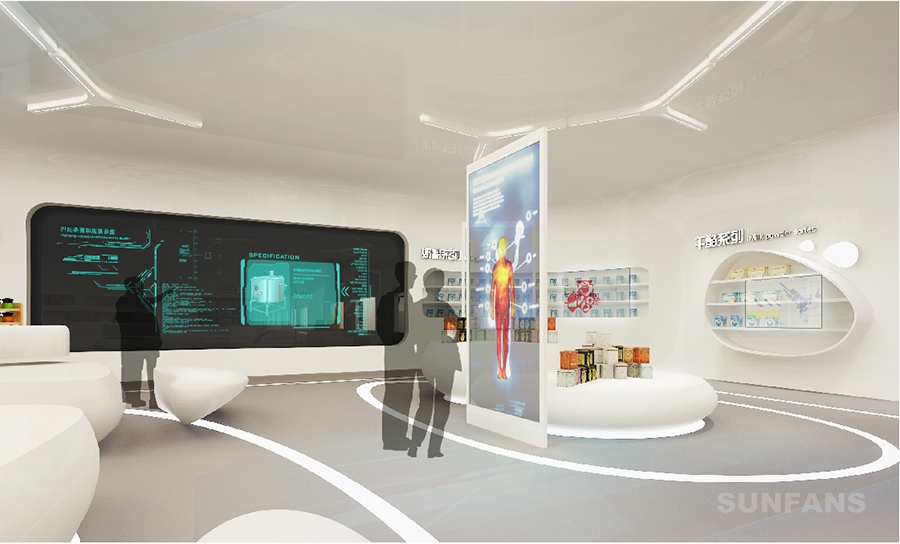 展廳設(shè)計(jì)中注意融入當(dāng)下的流行元素,融入到展示設(shè)計(jì)的logo、標(biāo)語或者其他視覺元素之中,吸引觀眾目光。燈光要簡單,要么暖色調(diào)要么冷色調(diào),多彩的照片反而有可能會影響客戶的注意力。