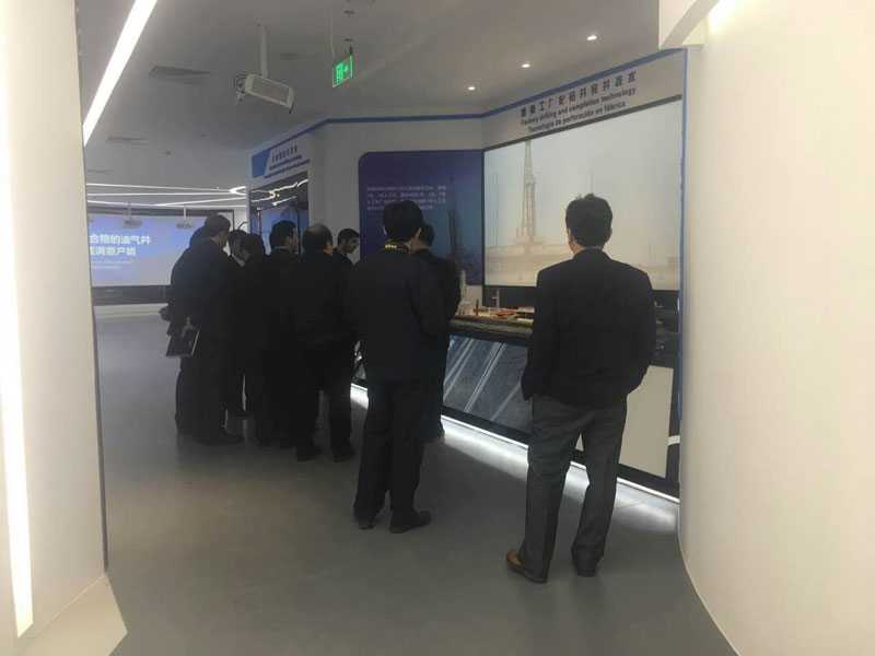 天津渤海鉆探展廳位于天津濱海新區(qū),布展面積約700平米。全體工作人員經(jīng)過5個月的全力以赴、精心施工、周密安排,確保展廳順利按時開館。開館當天迎來了第一批參觀人員——伊朗商務考察團。展廳舒服的空間設(shè)計,展示手段的先進性以及展示內(nèi)容的數(shù)字化的生動直觀性贏得了考察團的一致好評,促進了洽商雙方的合作意向進一步加深。