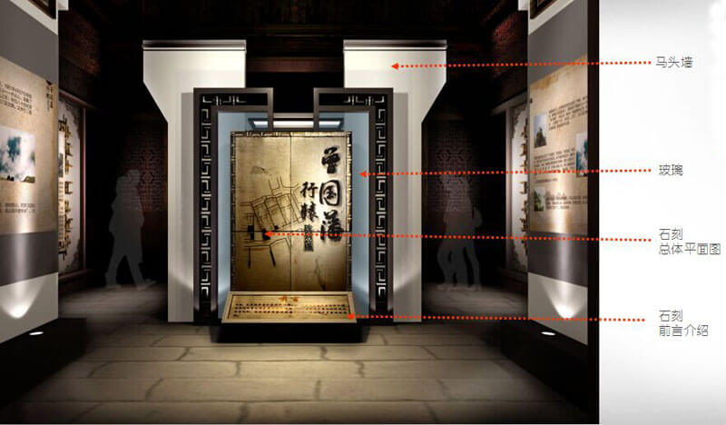詳盡的圖文介紹配以浮雕等藝術(shù)化的表現(xiàn)形式,提升了整個(gè)空間的藝術(shù)品位及文化價(jià)值。
