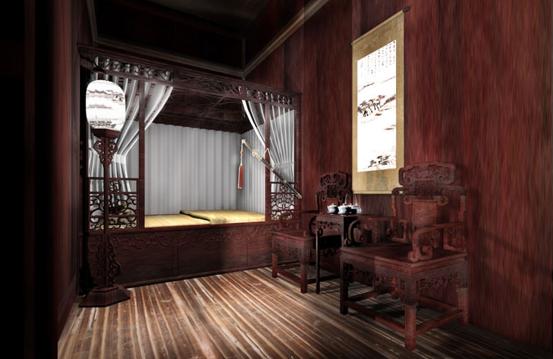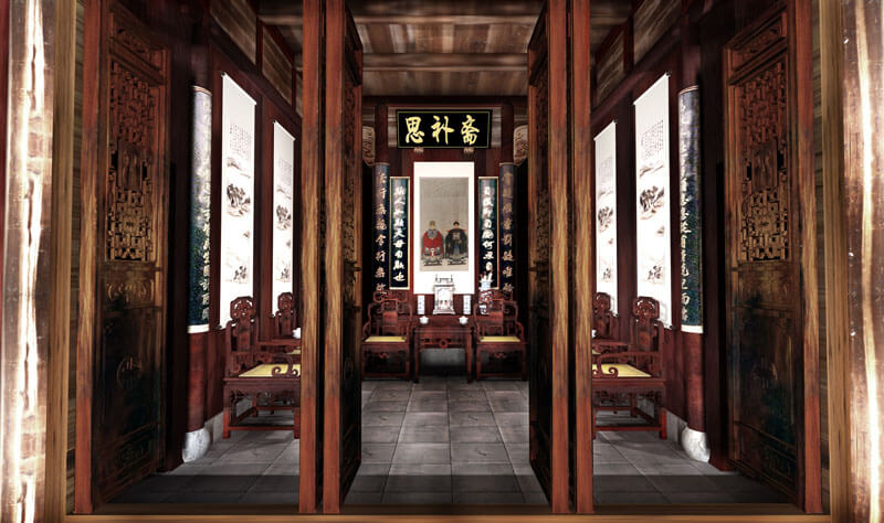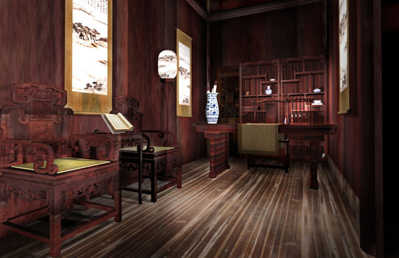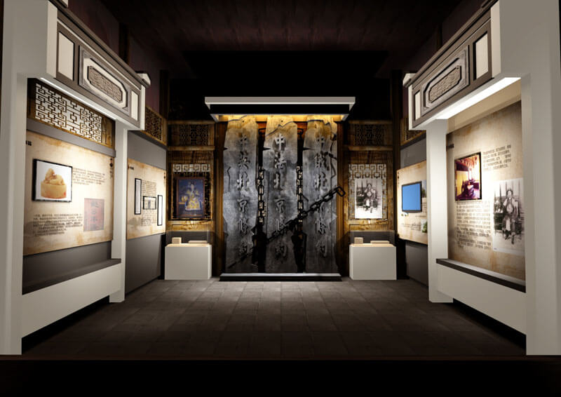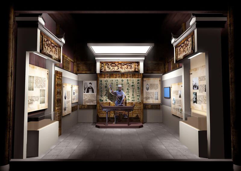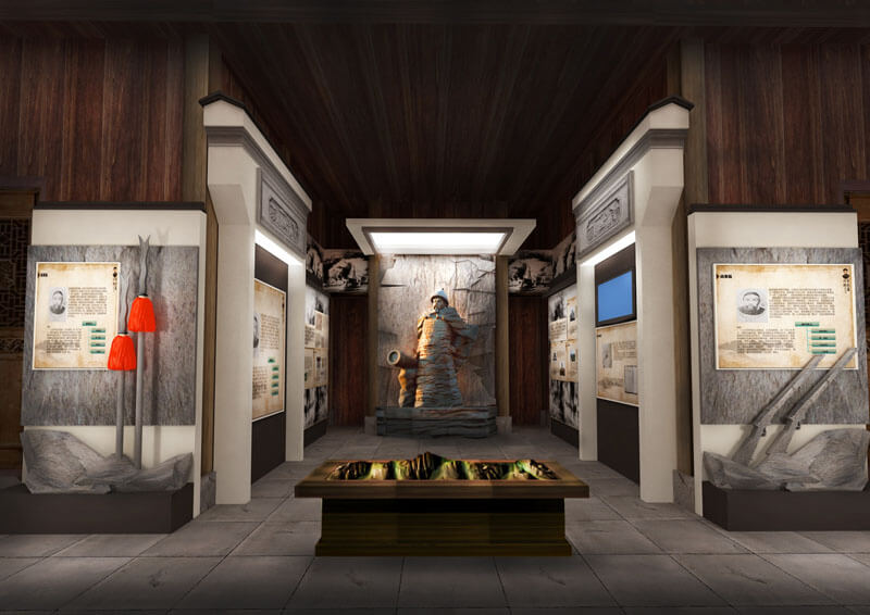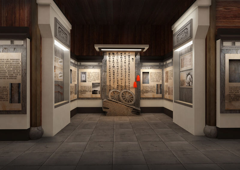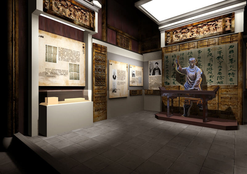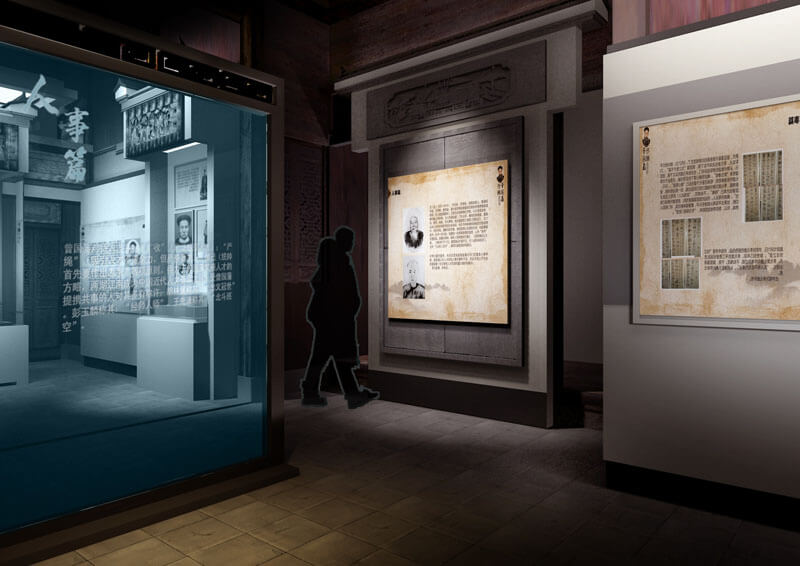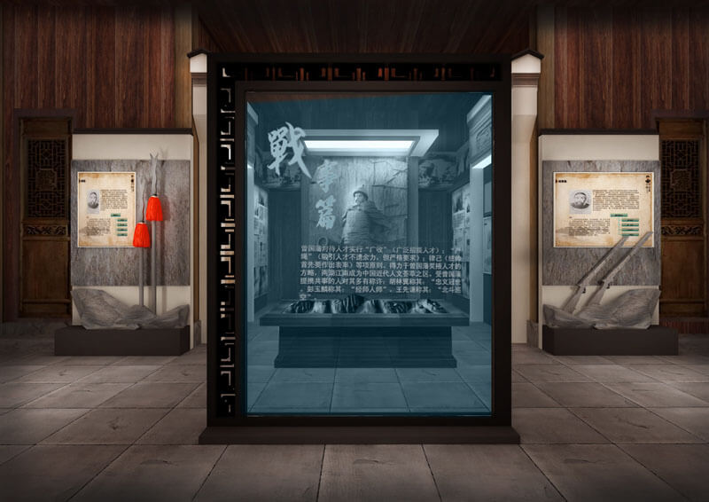 形式:突出祁門的地域特色,設(shè)計(jì)在洪家大屋結(jié)構(gòu)復(fù)原的基礎(chǔ)上,重新搭建展陳單元,在屋堂內(nèi)重現(xiàn)祁門經(jīng)典代表性建筑構(gòu)造,形成空間上的交錯(cuò),走入陳列館相對(duì)有限的空間內(nèi),就如同走入曾國藩所處時(shí)期的祁門一般,營造內(nèi)外一體,空間穿越的非凡感受。