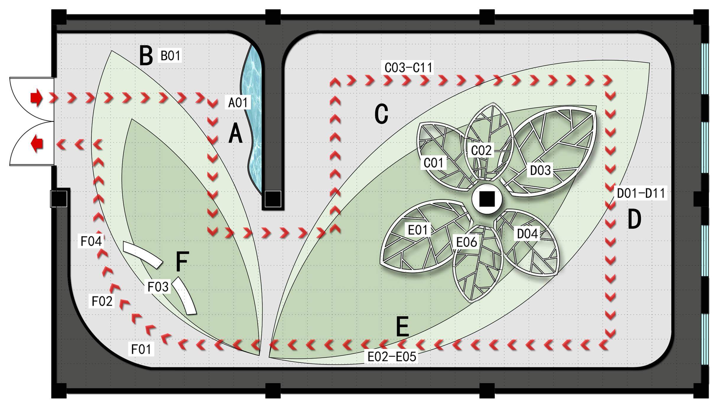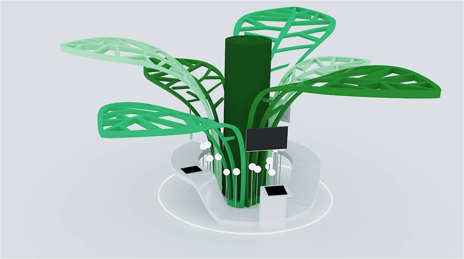 中間主要產(chǎn)品研發(fā)展示區(qū)由樹葉構(gòu)建。六片綠色的樹葉呈向上生長的狀態(tài),六片葉子象征著羅麥消費(fèi)、養(yǎng)生、服務(wù)、社交、休閑和創(chuàng)富的六位一體的商業(yè)模式,向上生長的趨勢象征著羅麥的事業(yè)蒸蒸日上,樹葉周圍的白色小燈代表著羅麥科技的產(chǎn)品,在大葉子的庇護(hù)下茁壯成長。