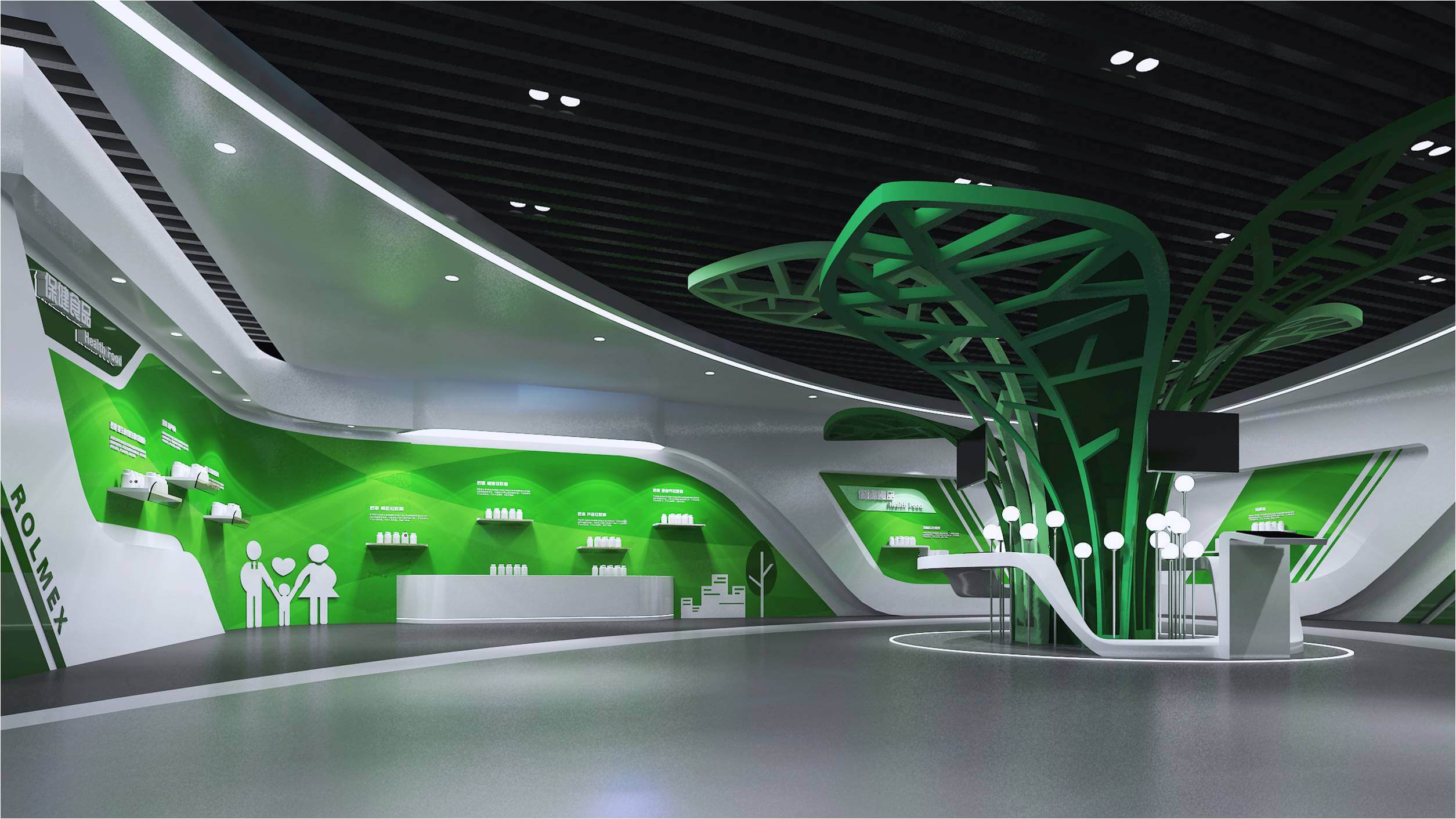 展廳設(shè)計色彩以白為主綠為輔,傳承企業(yè)VI色彩,體現(xiàn)羅麥科技是一個綠色健康親和力強(qiáng)的企業(yè)。