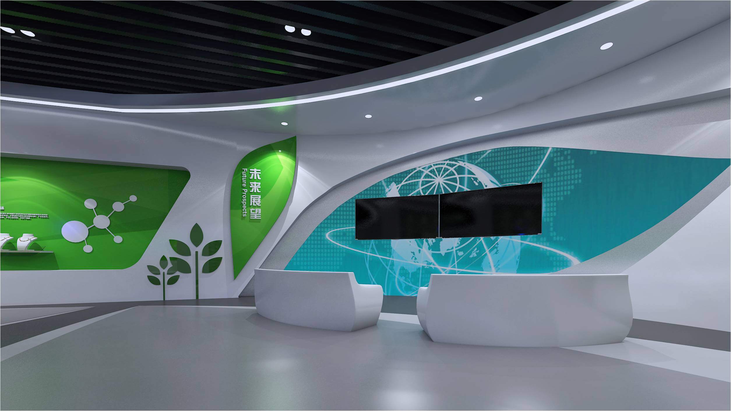 “樹葉”作為展廳設(shè)計元素,讓綠色健康貫穿整個企業(yè)展廳,讓觀眾置身綠色的科技世界。